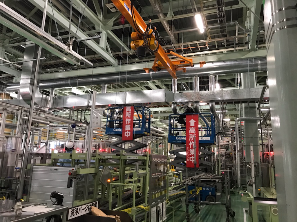 高所作業につきましては、稼働ラインを止めることなく作業を行います。